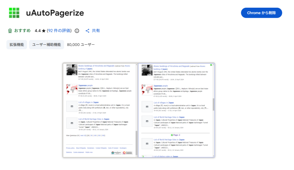 こいつは一言で言うと、「ページの下まで行くと、勝手に次のページを継ぎ足してくれる」という、怠惰の極みのような拡張機能です。