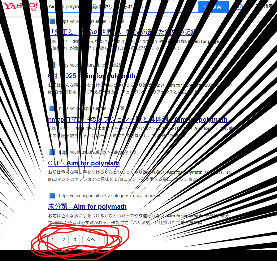 検索をして、記事を読んで、一番下まで行って、小さな「次へ」をクリックする……。